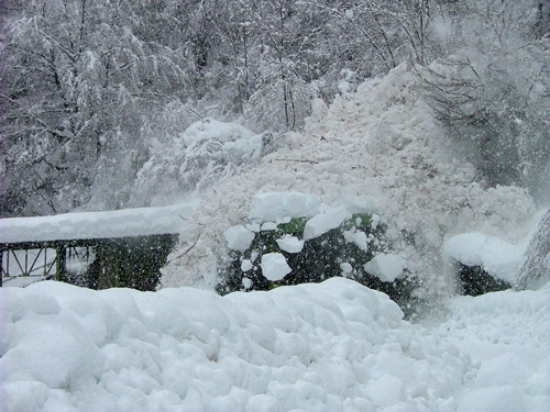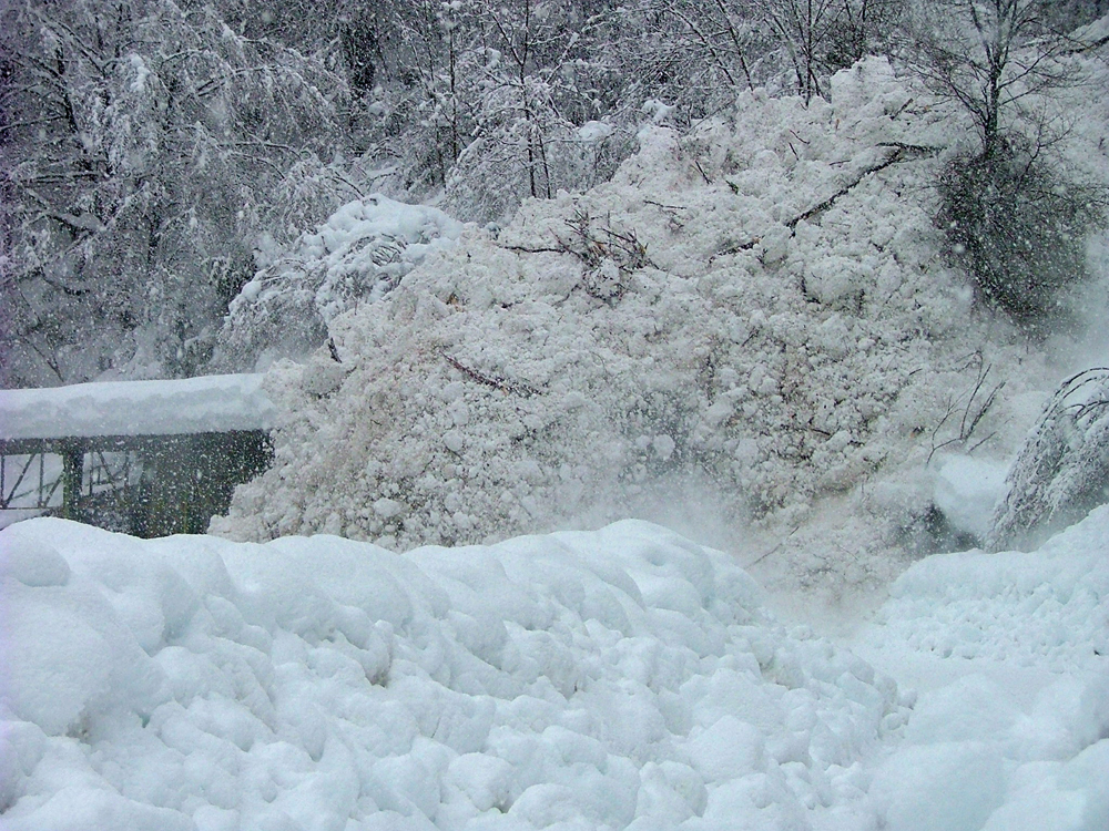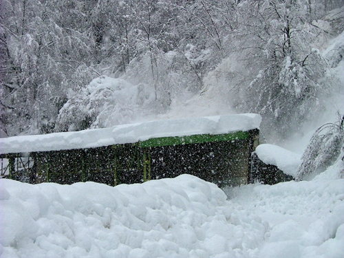 ![]() 16 Dicembre 2008 - Gli agenti della forestale assistono alla caduta della valanga al paravalanghe di Caouri |