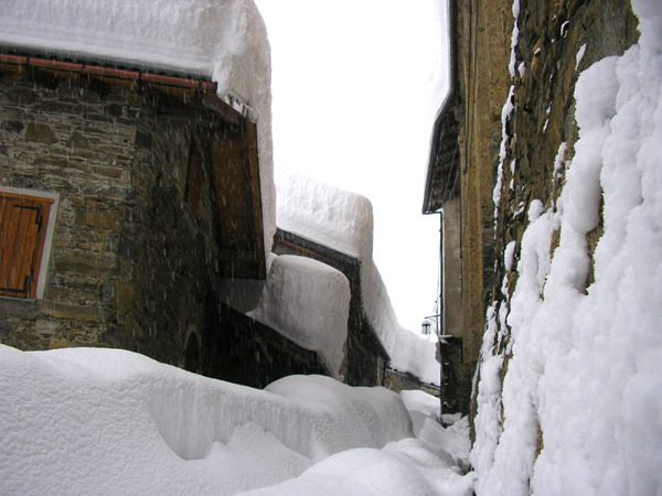 Fausto Arneodo di Monterosso Grana ha scritto: Sono Fausto Arneodo, il messo comunale di Castelmagno. Adesso sono a casa mia a Saretto di Monterosso, dove da domenica sera siamo senza energia elettrica (io ho un generatore). Stamattina alle 8.30 ho provato a raggiungere campomolino seguendo lo spartineve, ma non ci siamo riusciti perchè sulla strada c'erano già accumuli nevosi di slavine non più rimovibili con lo spartineve: siamo ritornati indietro nei pressi di varchiauso. Più tardi, la Provincia ha chiuso la strada al traffico per pericolo valanghe. Spero di vedere presto qui "sul muro" qualche notizia da Ezio e Claudio. Beppe Garnerone di Chiappi ha scritto: NEVICATA: ULTIMA ORA ore